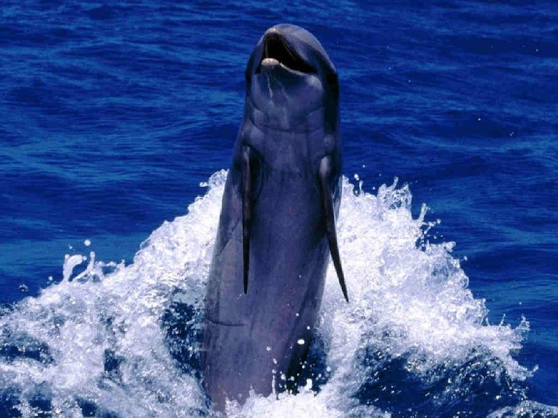 Delfine sind schnelle Schwimmer, sie erreichen Geschwindigkeiten von bis zu 55 Kilometern pro Stunde. Oft springen sie aus dem Wasser, zuweilen akrobatische Figuren ausführend (z. B. der