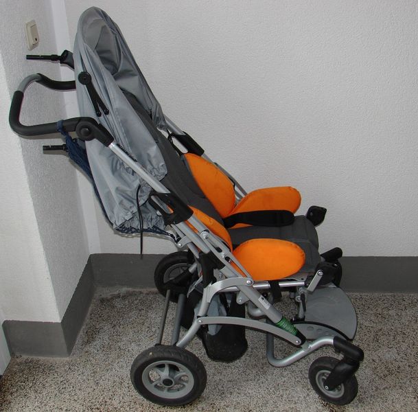 Da Luca nur kurze Wege zurücklegen kann, bekam er im September 2008 einen Reha Buggy genehmigt. Er ist sehr stabil und auch leicht umbaubar. So wie Luca wächst ist er leicht auf sein Körpermaß einstellbar. Auch in den PkW passt er super hinein, da er sich sehr gut zusammen klappen lässt. Durch ein gutes Gurtsystem ist ein sicheres Sitzen gewährleistet. Durch die Polster hat Luca überall einen sehr guten und stabilen Halt. Wir sind damit oft unterwegs, Luca fühlt sich darin sehr wohl.