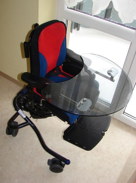 Im August 2007 bekam Luca ein Therapiestühlchen genehmigt. Dieser ist höhenverstellbar und wächst mit ihm mit. Das heißt, das man das Stühlchen auf seinen Körper seinem Wachstum anpassen kann. Luca hat dadurch eine verbesserte Sitzhaltung und eine gute Stützung an mehreren Stellen seines Körpers.
